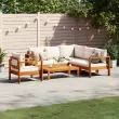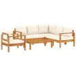 Ta vrtna sedežna garnitura je popoln dodatek za vaše dvorišče, teraso ali verando, saj zagotavlja udoben in vabljiv prostor za klepet z družino in prijatelji ali preprosto za sprostitev in uživanje na prostem. Material z dolgo življenjsko dobo: Trden akacijev les je čudovit naravni material. Akacijev les je tropski trden les, ki je gost, močan in vzdržljiv.Stabilna mizna plošča, ki je enostavna za čiščenje: Ta vrtna miza ima ploščo iz akacijevega lesa, ki je čvrsta, vzdržljiva in jo je enostavno čistiti z vlažno krpo.Udobno sedenje: To zunanje pohištvo z debelo oblazinjenimi blazinami zagotavlja udobno sedenje. Prevleko je mogoče odstraniti in oprati: Te sedežne blazine imajo odstranljive prevleke za lažje pranje in vzdrževanje.Modularna zasnova: Ta komplet zunanjega pohištva ima modularno zasnovo, zaradi česar je popolnoma prilagodljiv in enostaven za premikanje, tako da lahko zunanjo garnituro postavite kakor koli želite. Dobro je vedeti:Če želite, da vaše zunanje pohištvo ostane lepo, vam priporočamo, da ga zaščitite z vodoodporno prevleko.Maksimalna nosilnost (na sedež): 110 kgPotrebno sestavljanje: DaVrtni kavč dvosed:Material: Trden akacijev les z oljnim premazomDimenzije: 114 x 68 x 64 cm (Š x G x V)Velikost sedeža: 106 x 66 cm (Š x G)Višina sedeža od tal (brez blazine): 27 cmVišina naslonjal za roke od tal: 55 cmKotni sedež:Material: Trden akacijev les z oljnim premazomDimenzije: 68 x 68 x 64 cm (Š x G x V)Velikost sedeža: 66 x 66 cm (Š x G)Višina sedeža od tal (brez blazine): 27 cmKavč z naslonjali za roke:Material: Trden akacijev les z oljnim premazomDimenzije: 68 x 68 x 64 cm (Š x G x V)Velikost sedeža: 53 x 66 cm (Š × G)Višina sedeža, merjena od tal: 27 cmVišina naslonjal za roke od tal: 55 cmMiza:Material: Trden akacijev les z oljnim premazomDimenzije: 100 x 50 x 27 cm (D x Š x V)Blazina:Barva: Kremno belaMaterial prevleke: Tkanina (100 % poliester)Polnilo sedežne blazine: PenaPolnilo hrbtne blazine: bombažna vlaknaDimenzije sedežne blazine: 53/66 x 66 x 8 cm (Š x G x D)Dimenzije blazine za hrbet (L): 66 x 40 x 10 cm (D x Š x D)Dimenzije blazine za hrbet (S): 53 x 40 x 10 cm (D x Š x D)Paket vsebuje:2 x Vrtni kavč dvosed1 x Kotni sedež1 x Kavč z naslonjali za roke1 x Miza7 x Hrbtna blazina s snemljivo in pralno prevleko6 x Sedežna blazina s snemljivo pralno prevleko 3214849