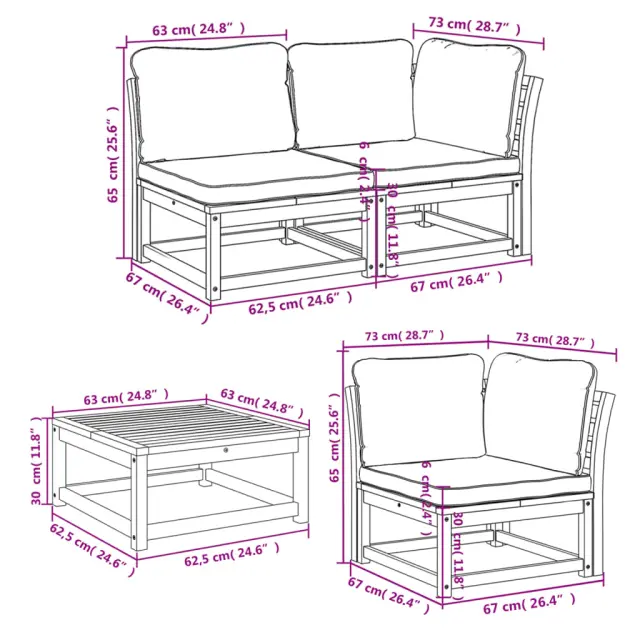 • Dimenzije blazine za sedež: 63 x 63 x 6 cm (D x Š x D)