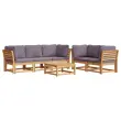 Ta lesena vrtna sedežna garnitura z blazinami ima eleganten dizajn in je odlična izbira za sprostitev in uživanje na vrtu ali terasi.