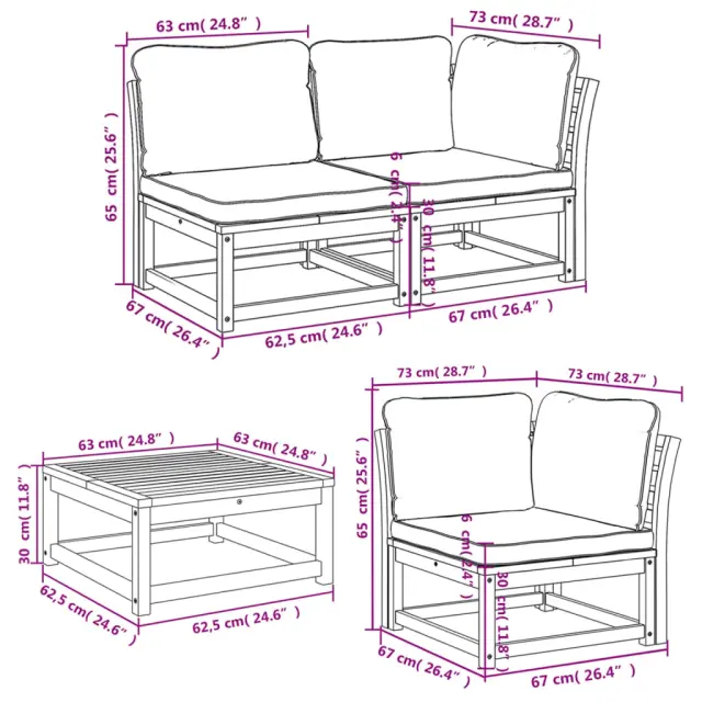 • Dimenzije blazine za sedež: 63 x 63 x 6 cm (D x Š x D)