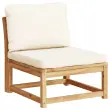 Ta lesena vrtna sedežna garnitura z blazinami ima eleganten dizajn in je odlična izbira za sprostitev in uživanje na vrtu ali terasi.