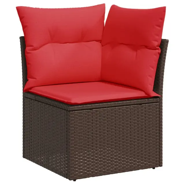vidaXL Vrtna sedežna garnitura 11-delna z blazinami rjava poli ratan