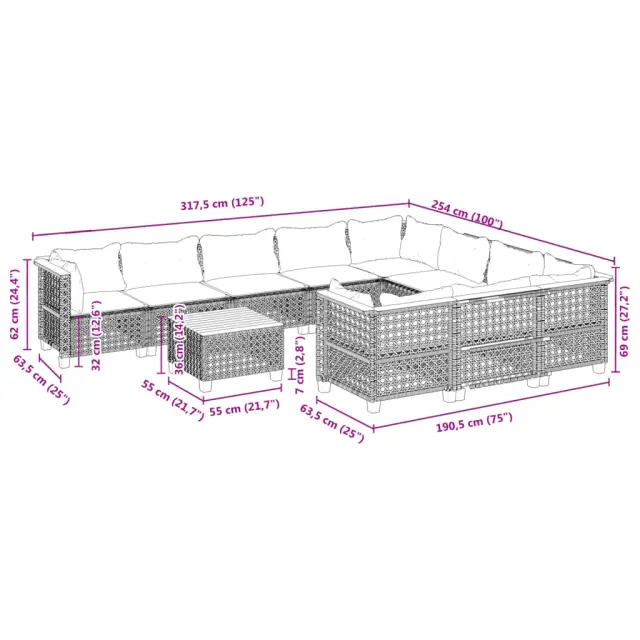 Ta vrtna sedežna garnitura je popoln dodatek za vaše dvorišče, teraso ali verando, saj zagotavlja udoben in vabljiv prostor za klepet z družino in prijatelji ali preprosto za sprostitev in uživanje na prostem.