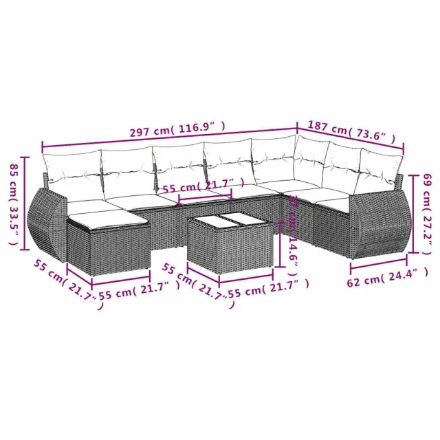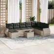 vidaXL Vrtna sedežna garnitura 9-delna z blazinami sv. siv poli ratan