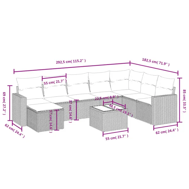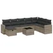 vidaXL Vrtna sedežna garnitura 9-delna z blazinami sv. siv poli ratan