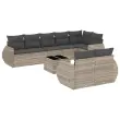 vidaXL Vrtna sedežna garnitura 9-delna z blazinami sv. siv poli ratan