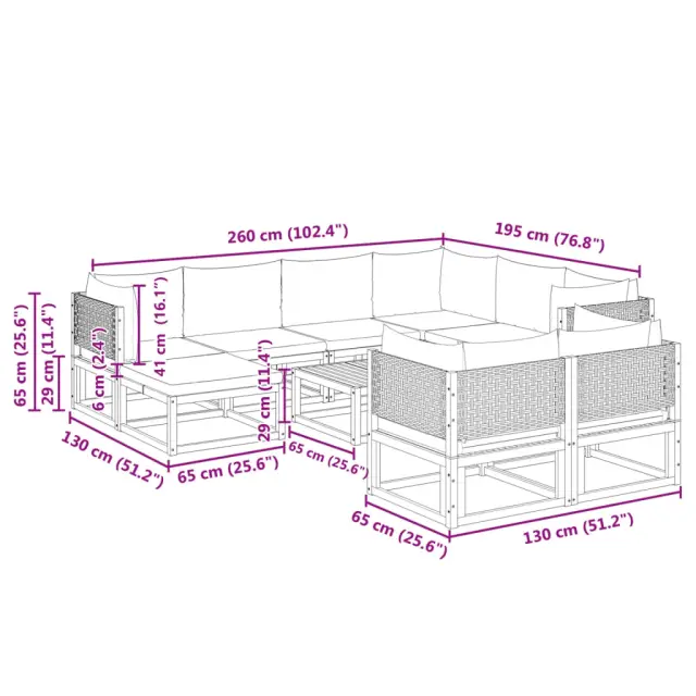 Ta vrtna sedežna garnitura je popoln dodatek za vaše dvorišče, teraso ali verando, saj zagotavlja udoben in vabljiv prostor za klepet z družino in prijatelji ali preprosto za sprostitev in uživanje na prostem.