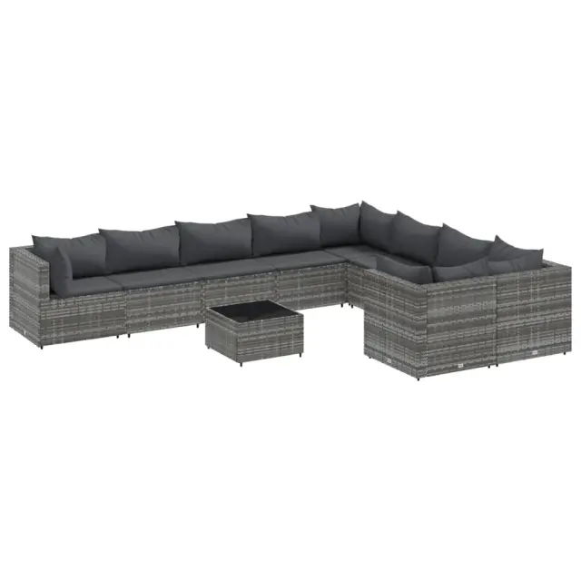 Ta vrtna sedežna garnitura je popoln dodatek za vaše dvorišče, teraso ali verando, saj zagotavlja udoben in vabljiv prostor za klepet z družino in prijatelji ali preprosto za sprostitev in uživanje na prostem. Vzdržljiv material: PE ratan, znan tudi kot poli ratan, je močan sintetični material, ki zahteva malo vzdrževanja in je videti kot naravni ratan. Je lahek, enostaven za čiščenje in se zaradi svoje vzdržljivosti in odpornosti na vremenske vplive pogosto uporablja za zunanje pohištvo.Robusten in stabilen okvir: Jeklen okvir s prašnim premazom je močan, stabilen, trpežen ter odporen na korozijo in slabe vremenske razmere, kar zagotavlja dolgotrajno delovanje.Modularna zasnova: Ta komplet zunanjega pohištva ima modularno zasnovo, zaradi česar je popolnoma prilagodljiv in enostaven za premikanje, tako da lahko zunanjo garnituro postavite kakor koli želite.Udobno sedenje: To zunanje pohištvo z debelo oblazinjenimi blazinami zagotavlja udobno sedenje.Steklena mizna plošča: Površina zunanje mize je izdelana iz močnega in trpežnega kaljenega stekla, kar omogoča enostavno čiščenje z vlažno krpo in vašemu zunanjemu prostoru doda pridih elegance. Dobro je vedeti:Če želite, da vaše zunanje pohištvo ostane lepo, vam priporočamo, da ga zaščitite z vodoodporno prevleko.Maksimalna nosilnost (na sedež): 110 kgUV-odpornoPotrebno sestavljanje: DaKotni sedež:Barva: SivaMaterial: PE ratan, jeklen okvir s prašnim premazomDimenzije: 63 x 63 x 57,5 cm (Š x G x V)Velikost sedeža: 55 x 55 cm (Š x G)Višina sedeža, merjena od tal: 31 cmSrednji sedež:Barva: SivaMaterial: PE ratan, jeklen okvir s prašnim premazomDimenzije: 63 x 63 x 57,5 cm (Š x G x V)Velikost sedeža: 63 x 55 cm (Š x G)Višina sedeža, merjena od tal: 31 cmNastavljive nogeKlubska mizica:Barva: SivaMaterial: PE ratan, jeklo s prašnim premazom, kaljeno stekloDimenzije: 50 x 50 x 30 cm (Š x G x V)Debelina stekla: 4 mmNastavljive nogeBlazina:Barva: AntracitnaMaterial prevleke: Tkanina (100 % poliester)Polnilo sedežne blazine: PenaPolnilo hrbtne blazine: bombažna vlaknaDimenzije sedežne blazine: 55/63 x 55 x 3 cm (Š x G x D)Dimenzije hrbtne blazine (L): 68 x 37 cm (Š x G)Dimenzije hrbtne blazine (M): 61 x 38 cm (Š x G)Dimenzije hrbtne blazine (S): 46 x 38 cm (Š x G)Paket vsebuje:4 x Kotni sedež5 x Srednji sedež1 x Klubska mizica9 x Blazina za sedež13 x Blazina za hrbet 3308322