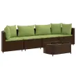 vidaXL Vrtna sedežna garnitura 5-delna z blazinami rjav poli ratan