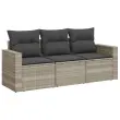 vidaXL Vrtna sedežna garnitura 3-delna z blazinami siv poli ratan