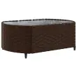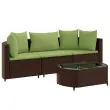 Ta vrtna sedežna garnitura je popoln dodatek za vaše dvorišče, teraso ali verando, saj zagotavlja udoben in vabljiv prostor za klepet z družino in prijatelji ali preprosto za sprostitev in uživanje na prostem. Vzdržljiv material: PE ratan, znan tudi kot poli ratan, je močan sintetični material, ki zahteva malo vzdrževanja in je videti kot naravni ratan. Je lahek, enostaven za čiščenje in se zaradi svoje vzdržljivosti in odpornosti na vremenske vplive pogosto uporablja za zunanje pohištvo.Robusten in stabilen okvir: Jeklen okvir s prašnim premazom je močan, stabilen, trpežen ter odporen na korozijo in slabe vremenske razmere, kar zagotavlja dolgotrajno delovanje.Modularna zasnova: Ta komplet zunanjega pohištva ima modularno zasnovo, zaradi česar je popolnoma prilagodljiv in enostaven za premikanje, tako da lahko zunanjo garnituro postavite kakor koli želite.Udobno sedenje: To zunanje pohištvo z debelo oblazinjenimi blazinami zagotavlja udobno sedenje.Steklena mizna plošča: Površina zunanje mize je izdelana iz močnega in trpežnega kaljenega stekla, kar omogoča enostavno čiščenje z vlažno krpo in vašemu zunanjemu prostoru doda pridih elegance. Dobro je vedeti:Če želite, da vaše zunanje pohištvo ostane lepo, vam priporočamo, da ga zaščitite z vodoodporno prevleko.Maksimalna nosilnost (na sedež): 110 kgUV-odpornoPotrebno sestavljanje: DaKotni sedež:Barva: RjavaMaterial: PE ratan, jeklen okvir s prašnim premazomDimenzije: 63 x 63 x 57,5 cm (Š x G x V)Velikost sedeža: 55 x 55 cm (Š x G)Višina sedeža, merjena od tal: 31 cmSrednji sedež:Barva: RjavaMaterial: PE ratan, jeklen okvir s prašnim premazomDimenzije: 63 x 63 x 57,5 cm (Š x G x V)Velikost sedeža: 63 x 55 cm (Š x G)Višina sedeža, merjena od tal: 31 cmNastavljive nogeKlubska mizica:Barva: RjavaMaterial: PE ratan, jeklo s prašnim premazom, kaljeno stekloDimenzije: 78 x 53 x 29,5 cm (Š x G x V)Debelina stekla: 4 mmNastavljive nogeBlazina:Barva: ZelenaMaterial prevleke: Tkanina (100 % poliester)Polnilo sedežne blazine: PenaPolnilo hrbtne blazine: bombažna vlaknaDimenzije sedežne blazine: 55/63 x 55 x 3 cm (Š x G x D)Dimenzije hrbtne blazine (L): 68 x 37 cm (Š x G)Dimenzije hrbtne blazine (S): 45 x 37 cm (Š x G) Paket vsebuje:2 x Kotni sedež1 x Sredinski sedež1 x Klubska mizica3 x Blazina za sedež5 x Blazina za hrbet 3308366