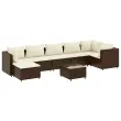 vidaXL Vrtna sedežna garnitura 8-delna z blazinami rjava poli ratan