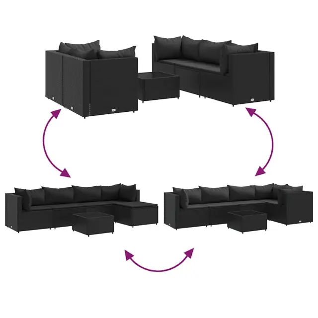 Ta vrtna sedežna garnitura je popoln dodatek za vaše dvorišče, teraso ali verando, saj zagotavlja udoben in vabljiv prostor za klepet z družino in prijatelji ali preprosto za sprostitev in uživanje na prostem. Vzdržljiv material: PE ratan, znan tudi kot poli ratan, je močan sintetični material, ki zahteva malo vzdrževanja in je videti kot naravni ratan. Je lahek, enostaven za čiščenje in se zaradi svoje vzdržljivosti in odpornosti na vremenske vplive pogosto uporablja za zunanje pohištvo.Robusten in stabilen okvir: Jeklen okvir s prašnim premazom je močan, stabilen, trpežen ter odporen na korozijo in slabe vremenske razmere, kar zagotavlja dolgotrajno delovanje.Steklena mizna plošča: Površina zunanje mize je izdelana iz močnega in trpežnega kaljenega stekla, kar omogoča enostavno čiščenje z vlažno krpo in vašemu zunanjemu prostoru doda pridih elegance.Modularna zasnova: Ta komplet zunanjega pohištva ima modularno zasnovo, zaradi česar je popolnoma prilagodljiv in enostaven za premikanje, tako da lahko zunanjo garnituro postavite kakor koli želite.Udobno sedenje: To zunanje pohištvo z debelo oblazinjenimi blazinami zagotavlja udobno sedenje. Dobro je vedeti:Če želite, da vaše zunanje pohištvo ostane lepo, vam priporočamo, da ga zaščitite z vodoodporno prevleko.Maksimalna nosilnost (na sedež): 110 kgUV-odpornoNastavljive nogePotrebno sestavljanje: DaKotni kavč:Barva: ČrnaMaterial: PE ratan, jeklen okvir s prašnim premazomDimenzije: 63 x 63 x 57,5 cm (Š x G x V)Velikost sedeža: 55 x 55 cm (Š x G)Višina sedeža, merjena od tal: 31 cmSredinski kavč:Barva: ČrnaMaterial: PE ratan, jeklen okvir s prašnim premazomDimenzije: 63 x 63 x 57,5 cm (Š x G x V)Velikost sedeža: 63 x 55 cm (Š x G)Višina sedeža, merjena od tal: 31 cmMiza:Barva: ČrnaMaterial: PE ratan, jeklo s prašnim premazom, kaljeno stekloDimenzije: 50 x 50 x 30 cm (Š x G x V)Debelina stekla: 4 mmBlazina:Barva: ČrnaMaterial prevleke: Tkanina (100 % poliester)Polnilo sedežne blazine: PenaPolnilo hrbtne blazine: bombažna vlaknaDimenzije sedežne blazine: 55/63 x 55 x 3 cm (Š x G x D)Velikost hrbtne blazine (L): 68 x 37 cm (Š x G)Velikost hrbtne blazine (M): 61 x 38 cm (Š x G)Velikost hrbtne blazine (S): 46 x 38 cm (Š x G)Paket vsebuje:4 x Kotni kavč1 x Sredinski kavč1 x Klubska mizica9 x Blazina za hrbet5 x Blazina za sedež 3308019