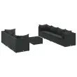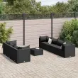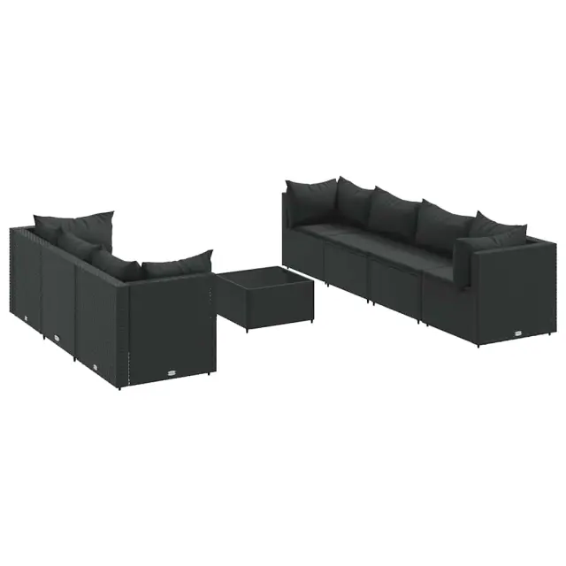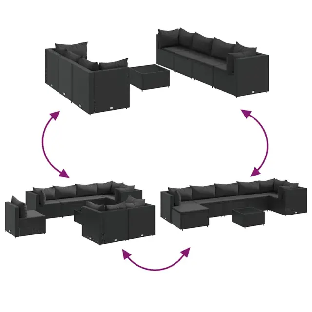 Ta vrtna sedežna garnitura je popoln dodatek za vaše dvorišče, teraso ali verando, saj zagotavlja udoben in vabljiv prostor za klepet z družino in prijatelji ali preprosto za sprostitev in uživanje na prostem. Vzdržljiv material: PE ratan, znan tudi kot poli ratan, je močan sintetični material, ki zahteva malo vzdrževanja in je videti kot naravni ratan. Je lahek, enostaven za čiščenje in se zaradi svoje vzdržljivosti in odpornosti na vremenske vplive pogosto uporablja za zunanje pohištvo.Robusten in stabilen okvir: Jeklen okvir s prašnim premazom je močan, stabilen, trpežen ter odporen na korozijo in slabe vremenske razmere, kar zagotavlja dolgotrajno delovanje.Steklena mizna plošča: Površina zunanje mize je izdelana iz močnega in trpežnega kaljenega stekla, kar omogoča enostavno čiščenje z vlažno krpo in vašemu zunanjemu prostoru doda pridih elegance.Modularna zasnova: Ta komplet zunanjega pohištva ima modularno zasnovo, zaradi česar je popolnoma prilagodljiv in enostaven za premikanje, tako da lahko zunanjo garnituro postavite kakor koli želite.Udobno sedenje: To zunanje pohištvo z debelo oblazinjenimi blazinami zagotavlja udobno sedenje. Dobro je vedeti:Če želite, da vaše zunanje pohištvo ostane lepo, vam priporočamo, da ga zaščitite z vodoodporno prevleko.Maksimalna nosilnost (na sedež): 110 kgUV-odpornoNastavljive nogePotrebno sestavljanje: DaKotni kavč:Barva: ČrnaMaterial: PE ratan, jeklen okvir s prašnim premazomDimenzije: 63 x 63 x 57,5 cm (Š x G x V)Velikost sedeža: 55 x 55 cm (Š x G)Višina sedeža, merjena od tal: 31 cmSredinski kavč:Barva: ČrnaMaterial: PE ratan, jeklen okvir s prašnim premazomDimenzije: 63 x 63 x 57,5 cm (Š x G x V)Velikost sedeža: 63 x 55 cm (Š x G)Višina sedeža, merjena od tal: 31 cmMiza:Barva: ČrnaMaterial: PE ratan, jeklo s prašnim premazom, kaljeno stekloDimenzije: 50 x 50 x 30 cm (Š x G x V)Debelina stekla: 4 mmBlazina:Barva: ČrnaMaterial prevleke: Tkanina (100 % poliester)Polnilo sedežne blazine: PenaPolnilo hrbtne blazine: bombažna vlaknaDimenzije sedežne blazine: 55/63 x 55 x 3 cm (Š x G x D)Velikost hrbtne blazine (L): 68 x 37 cm (Š x G)Velikost hrbtne blazine (M): 61 x 38 cm (Š x G)Velikost hrbtne blazine (S): 46 x 38 cm (Š x G)Paket vsebuje:4 x Kotni kavč3 x Sredinski kavč1 x Klubska mizica11 x Blazina za hrbet7 x Blazina za sedež 3308035