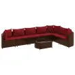 Ta vrtna sedežna garnitura je popoln dodatek za vaše dvorišče, teraso ali verando, saj zagotavlja udoben in vabljiv prostor za klepet z družino in prijatelji ali preprosto za sprostitev in uživanje na prostem. Vzdržljiv material: PE ratan, znan tudi kot poli ratan, je močan sintetični material, ki zahteva malo vzdrževanja in je videti kot naravni ratan. Je lahek, enostaven za čiščenje in se zaradi svoje vzdržljivosti in odpornosti na vremenske vplive pogosto uporablja za zunanje pohištvo.Robusten in stabilen okvir: Jeklen okvir s prašnim premazom je močan, stabilen, trpežen ter odporen na korozijo in slabe vremenske razmere, kar zagotavlja dolgotrajno delovanje.Modularna zasnova: Ta komplet zunanjega pohištva ima modularno zasnovo, zaradi česar je popolnoma prilagodljiv in enostaven za premikanje, tako da lahko zunanjo garnituro postavite kakor koli želite.Udobno sedenje: To zunanje pohištvo z debelo oblazinjenimi blazinami zagotavlja udobno sedenje.Steklena mizna plošča: Površina zunanje mize je izdelana iz močnega in trpežnega kaljenega stekla, kar omogoča enostavno čiščenje z vlažno krpo in vašemu zunanjemu prostoru doda pridih elegance. Dobro je vedeti:Če želite, da vaše zunanje pohištvo ostane lepo, vam priporočamo, da ga zaščitite z vodoodporno prevleko.Maksimalna nosilnost (na sedež): 110 kgUV-odpornoPotrebno sestavljanje: DaKotni sedež:Barva: RjavaMaterial: PE ratan, jeklen okvir s prašnim premazomDimenzije: 63 x 63 x 57,5 cm (Š x G x V)Velikost sedeža: 55 x 55 cm (Š x G)Višina sedeža, merjena od tal: 31 cmSrednji sedež:Barva: RjavaMaterial: PE ratan, jeklen okvir s prašnim premazomDimenzije: 63 x 63 x 57,5 cm (Š x G x V)Velikost sedeža: 63 x 55 cm (Š x G)Višina sedeža, merjena od tal: 31 cmNastavljive nogeKlubska mizica:Barva: RjavaMaterial: PE ratan, jeklo s prašnim premazom, kaljeno stekloDimenzije: 78 x 53 x 29,5 cm (Š x G x V)Debelina stekla: 4 mmNastavljive nogeBlazina:Barva: Cimet rdečaMaterial prevleke: Tkanina (100 % poliester)Polnilo sedežne blazine: PenaPolnilo hrbtne blazine: bombažna vlaknaDimenzije sedežne blazine: 55/63 x 55 x 3 cm (Š x G x D)Dimenzije hrbtne blazine (L): 68 x 37 cm (Š x G)Dimenzije hrbtne blazine (S): 45 x 37 cm (Š x G) Paket vsebuje:3 x Kotni kavč4 x Srednji sedež1 x Klubska mizica7 x Blazina za sedež10 x Blazina za hrbet 3308389