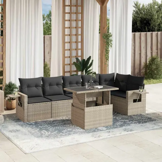 vidaXL Vrtna sedežna garnitura 7-delna z blazinami siv poli ratan