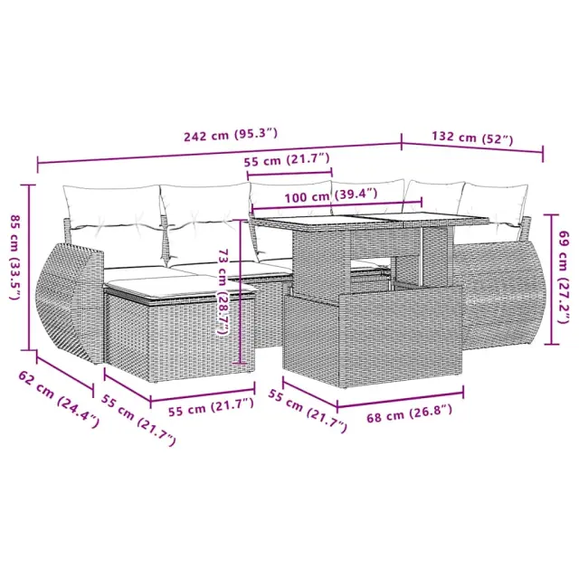 vidaXL Vrtna sedežna garnitura 7-delna z blazinami siv poli ratan