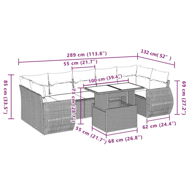 vidaXL Vrtna sedežna garnitura 8-delna z blazinami sv. siv poli ratan