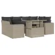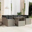 Ta vrtna sedežna garnitura je popoln dodatek za vaše dvorišče, teraso ali verando, saj zagotavlja udoben in vabljiv prostor za klepet z družino in prijatelji ali preprosto za sprostitev in uživanje na prostem. Vzdržljiv material: PE ratan, znan tudi kot poli ratan, je močan sintetični material, ki zahteva malo vzdrževanja in je videti kot naravni ratan. Je lahek, enostaven za čiščenje in se zaradi svoje vzdržljivosti in odpornosti na vremenske vplive pogosto uporablja za zunanje pohištvo.Nastavljiva mizna plošča: Z dvigom mizne plošče lahko mizo povišate, s čimer se zunanja klubska mizica spremeni v jedilno mizo. Popolna je za sprejemanje gostov ali uživanje v obrokih na prostem.Udobno sedenje: To zunanje pohištvo z debelo oblazinjenimi blazinami zagotavlja udobno sedenje.Prevleko je mogoče odstraniti in oprati: Te sedežne blazine imajo odstranljive prevleke za lažje pranje in vzdrževanje.Modularna zasnova: Ta komplet zunanjega pohištva ima modularno zasnovo, zaradi česar je popolnoma prilagodljiv in enostaven za premikanje, tako da lahko zunanjo garnituro postavite kakor koli želite. Dobro je vedeti:Če želite, da vaše zunanje pohištvo ostane lepo, vam priporočamo, da ga zaščitite z vodoodporno prevleko.Maksimalna nosilnost (na sedež): 110 kgUV-odpornoPotrebno sestavljanje: DaKotni sedež:Barva: Svetlo sivaMaterial: PE ratan, jeklen okvir s prašnim premazomDimenzije: 62 x 62 x 69 cm (Š x G x V)Velikost sedeža: 55 x 55 cm (Š x G)Višina sedeža, merjena od tal: 37 cmSrednji sedež:Barva: Svetlo sivaMaterial: PE ratan, jeklen okvir s prašnim premazomDimenzije: 55 x 62 x 69 cm (Š x G x V)Velikost sedeža: 55 x 55 cm (Š x G)Višina sedeža, merjena od tal: 37 cmKavč z naslonjali za roke:Barva: Svetlo sivaMaterial: PE ratan, jeklen okvir s prašnim premazomDimenzije: 83 x 62 x 69 cm (Š x G x V)Velikost sedeža: 55 x 55 cm (Š x G)Višina sedeža, merjena od tal: 37 cmVišina naslonjal za roke od tal: 55 cmMiza:Barva: Svetlo sivaMaterial: PE ratan, jeklo s prašnim premazom, kaljeno stekloDimenzije: 100 x 55 x 44/73 cm (D x Š x V)Blazina:Barva: Antracitna Material prevleke: Tkanina (100 % poliester)Polnilo sedežne blazine: PenaPolnilo hrbtne blazine: bombažna vlaknaDimenzije sedežne blazine: 55 x 55 x 3 cm (Š x G x D)Dimenzije hrbtne blazine: 55 x 45 x 13 cm (D x Š x D)Paket vsebuje:2 x Kotni sedež2 x Sredinski sedež2 x Kavč z naslonjali za roke1 x Vrtna miza8 x Blazina za hrbet6 x Sedežna blazina s snemljivo pralno prevleko 3269022