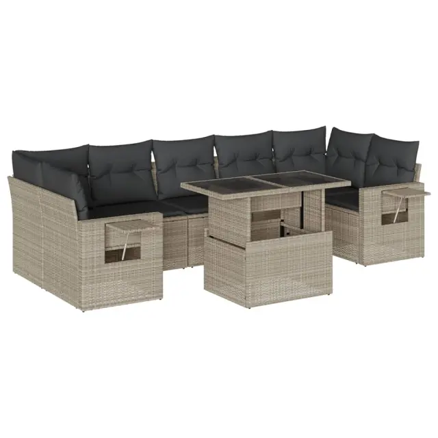 vidaXL Vrtna sedežna garnitura 8-delna z blazinami sv. siv poli ratan