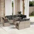 vidaXL Vrtna sedežna garnitura 9-delna z blazinami sv. siv poli ratan
