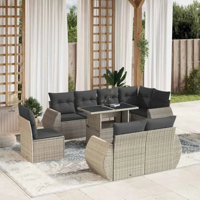 vidaXL Vrtna sedežna garnitura 9-delna z blazinami sv. siv poli ratan