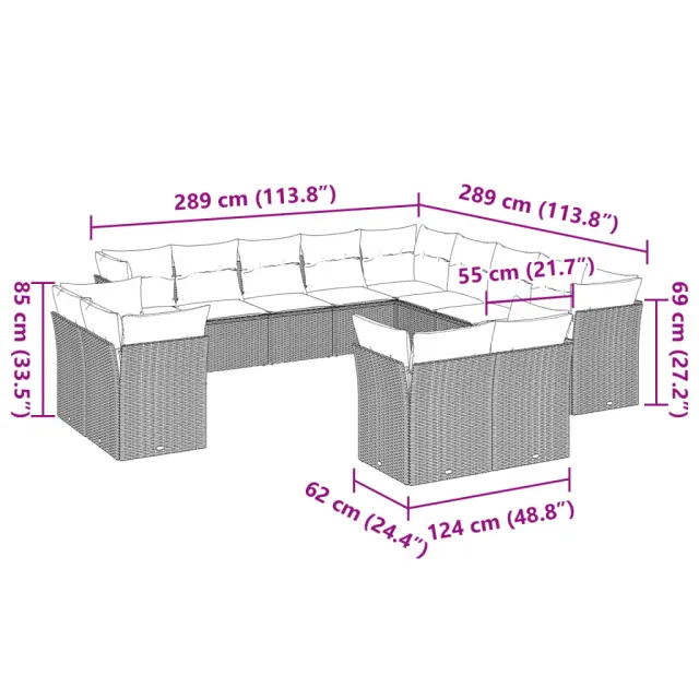 Ta vrtna sedežna garnitura je popoln dodatek za vaše dvorišče, teraso ali verando, saj zagotavlja udoben in vabljiv prostor za klepet z družino in prijatelji ali preprosto za sprostitev in uživanje na prostem.