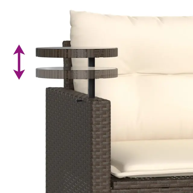 • Priročna stranska mizica: To zunanje pohištvo ima na naslonu za roke po višini nastavljivo stransko mizico, ki je priročen prostor za shranjevanje potrebščin na dosegu roke.