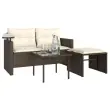 vidaXL Vrtna sedežna garnitura 3-delna z blazinami rjav poli ratan