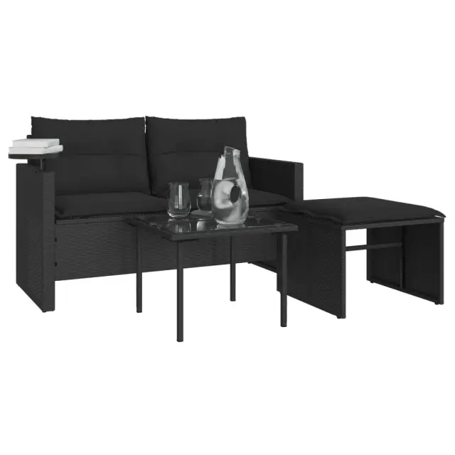 vidaXL Vrtna sedežna garnitura 3-delna z blazinami črn poli ratan