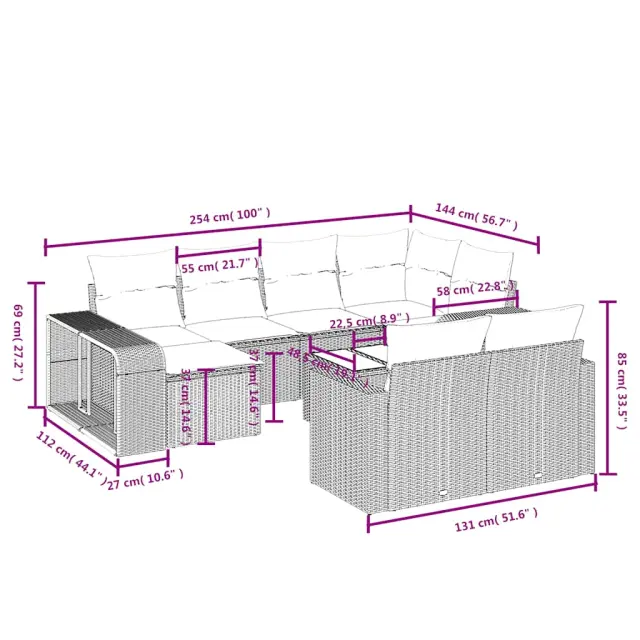 vidaXL Vrtna sedežna garnitura 11-delna z blazinami sv. siv poli ratan