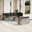 vidaXL Vrtna sedežna garnitura 10-delna z blazinami sv. siv poli ratan
