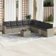 vidaXL Vrtna sedežna garnitura 10-delna z blazinami sv. siv poli ratan