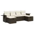 vidaXL Vrtna sedežna garnitura 6-delna z blazinami rjav poli ratan