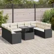 vidaXL Vrtna sedežna garnitura 10-delna z blazinami črn poli ratan