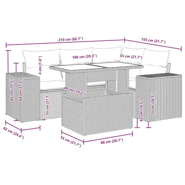 vidaXL Vrtna sedežna garnitura 5-delna z blazinami rjav poli ratan