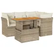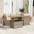 Ta vrtna sedežna garnitura je popoln dodatek za vaše dvorišče, teraso ali verando, saj zagotavlja udoben in vabljiv prostor za klepet z družino in prijatelji ali preprosto za sprostitev in uživanje na prostem. Trpežen material: PE ratan, znan tudi kot poli ratan, je močan sintetični material, ki ne potrebuje vzdrževanja in je videti kot naravni ratan. Je lahek, enostaven za čiščenje in se zaradi svoje vzdržljivosti in odpornosti na vremenske vplive pogosto uporablja za zunanje pohištvo.Funkcija shranjevanja z vodoodporno torbo: Vrtno pohištvo ima pod sedežem prostor za shranjevanje, opremljen z vodoodporno torbo za shranjevanje blazin, igrač in drugih stvari. Notranjo torbo je mogoče varno pritrditi na zunanje pohištvo s kavljem in zanko za večjo stabilnost.Nastavljiva mizna plošča: Z dvigom mizne plošče lahko mizo povišate, s čimer se zunanja klubska mizica spremeni v jedilno mizo. Popolna je za sprejemanje gostov ali uživanje v obrokih na prostem.Prevleko je mogoče odstraniti in oprati: Te sedežne blazine imajo odstranljive prevleke za lažje pranje in vzdrževanje.Modularna zasnova: Ta komplet zunanjega pohištva ima modularno zasnovo, zaradi česar je popolnoma prilagodljiv in enostaven za premikanje, tako da lahko zunanjo garnituro postavite kakor koli želite. Dobro je vedeti:Če želite, da vaše zunanje pohištvo ostane lepo, vam priporočamo, da ga zaščitite z vodoodporno prevleko.Dimenzije vodoodporne vreče: 55 x 53 x 34 cm (D x Š x V)Maksimalna nosilnost (na sedež): 110 kgUV-odpornoPlastične nastavljive nogePotrebno sestavljanje: DaKotni sedež:Barva: BežMaterial: PE ratan, jeklen okvir s prašnim premazomDimenzije: 62 x 62 x 69 cm (Š x G x V)Velikost sedeža: 55 x 55 cm (Š x G)Višina sedeža od tal (brez blazine): 37 cmSrednji sedež:Barva: BežMaterial: PE ratan, jeklen okvir s prašnim premazomDimenzije: 55 x 62 x 69 cm (Š x G x V)Velikost sedeža: 55 x 55 cm (Š x G)Višina sedeža od tal (brez blazine): 37 cmMiza:Barva: BežMaterial: PE ratan, prašno premazano jeklo, trden akacijev les z oljnim premazomDimenzije: 100 x 55 x 44/73 cm (D x Š x V)Blazina:Barva: Kremno belaMaterial prevleke: Tkanina (100 % poliester)Polnilo sedežne blazine: PenaPolnilo hrbtne blazine: bombažna vlaknaDimenzije sedežne blazine: 55 x 55 x 3 cm (Š x G x D)Dimenzije hrbtne blazine: 55 x 45 x 13 cm (D x Š x D)Paket vsebuje:1 x Vrtna miza3 x Kotni kavč s funkcijo shranjevanja z vodoodporno vrečo1 x Srednji kavč s funkcijo shranjevanja z vodoodporno vrečo7 x Hrbtna blazina4 x Sedežna blazina s snemljivo in pralno prevleko 3326921