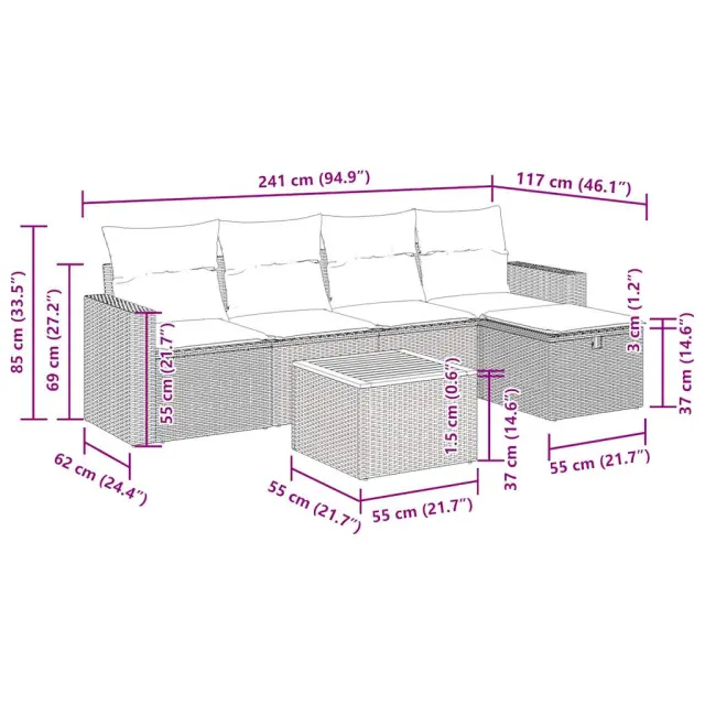 vidaXL Vrtna sedežna garnitura 6-delna z blazinami bež poli ratan