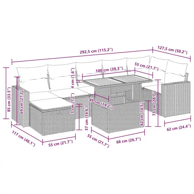 vidaXL Vrtna sedežna garnitura 5-delna z blazinami poli ratan/akacija
