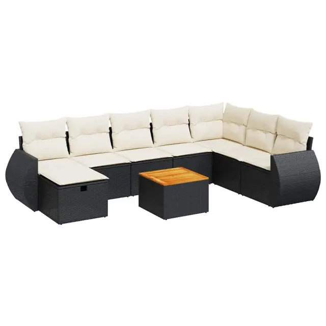 vidaXL Vrtna sedežna garnitura 9-delna z blazinami črn poli ratan