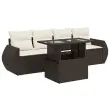 vidaXL Vrtna sedežna garnitura 5-delna z blazinami rjav poli ratan