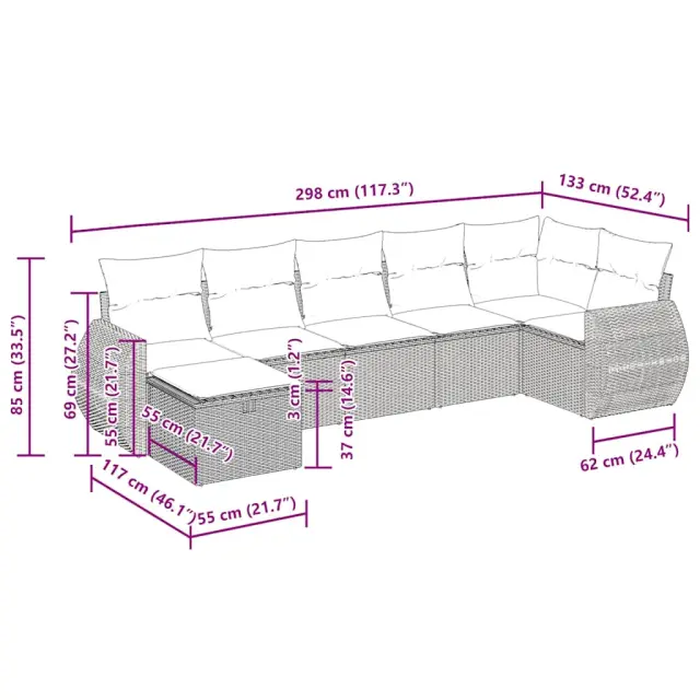 vidaXL Vrtna sedežna garnitura 7-delna z blazinami rjav poli ratan