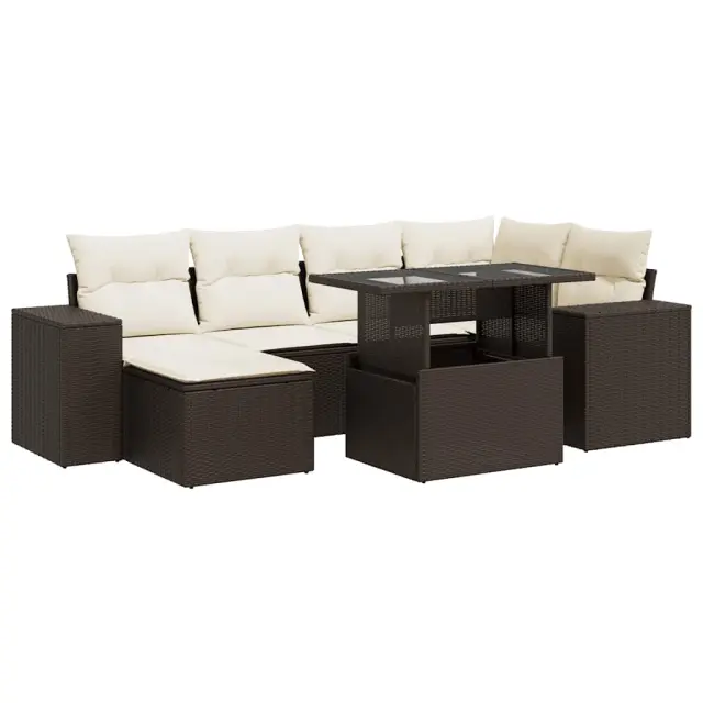 vidaXL Vrtna sedežna garnitura 7-delna z blazinami rjav poli ratan