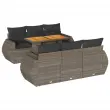 Ta vrtna sedežna garnitura je popoln dodatek za vaše dvorišče, teraso ali verando, saj zagotavlja udoben in vabljiv prostor za klepet z družino in prijatelji ali preprosto za sprostitev in uživanje na prostem. Trpežen material: PE ratan, znan tudi kot poli ratan, je močan sintetični material, ki ne potrebuje vzdrževanja in je videti kot naravni ratan. Je lahek, enostaven za čiščenje in se zaradi svoje vzdržljivosti in odpornosti na vremenske vplive pogosto uporablja za zunanje pohištvo.Funkcija shranjevanja z vodoodporno torbo: Vrtno pohištvo ima pod sedežem prostor za shranjevanje, opremljen z vodoodporno torbo za shranjevanje blazin, igrač in drugih stvari. Notranjo torbo je mogoče varno pritrditi na zunanje pohištvo s kavljem in zanko za večjo stabilnost.Nastavljiva mizna plošča: Z dvigom mizne plošče lahko mizo povišate, s čimer se zunanja klubska mizica spremeni v jedilno mizo. Popolna je za sprejemanje gostov ali uživanje v obrokih na prostem.Prevleko je mogoče odstraniti in oprati: Te sedežne blazine imajo odstranljive prevleke za lažje pranje in vzdrževanje.Modularna zasnova: Ta komplet zunanjega pohištva ima modularno zasnovo, zaradi česar je popolnoma prilagodljiv in enostaven za premikanje, tako da lahko zunanjo garnituro postavite kakor koli želite. Dobro je vedeti:Če želite, da vaše zunanje pohištvo ostane lepo, vam priporočamo, da ga zaščitite z vodoodporno prevleko.Dimenzije vodoodporne vreče: 55 x 53 x 34 cm (D x Š x V)Maksimalna nosilnost (na sedež): 110 kgUV-odpornoPlastične nastavljive nogePotrebno sestavljanje: DaKotni sedež:Barva: SivaMaterial: PE ratan, jeklen okvir s prašnim premazomDimenzije: 71 x 62 x 69 cm (Š x G x V)Velikost sedeža: 55 x 55 cm (Š x G)Višina sedeža od tal (brez blazine): 37 cmVišina naslonjal za roke od tal: 55 cmSrednji sedež:Barva: SivaMaterial: PE ratan, jeklen okvir s prašnim premazomDimenzije: 55 x 62 x 69 cm (Š x G x V)Velikost sedeža: 55 x 55 cm (Š x G)Višina sedeža od tal (brez blazine): 37 cmMiza:Barva: SivaMaterial: PE ratan, prašno premazano jeklo, trden akacijev les z oljnim premazomDimenzije: 100 x 55 x 44/73 cm (D x Š x V)Blazina:Barva: Temno sivaMaterial prevleke: Tkanina (100 % poliester)Polnilo sedežne blazine: PenaPolnilo hrbtne blazine: bombažna vlaknaDimenzije sedežne blazine: 55 x 55 x 3 cm (Š x G x D)Dimenzije hrbtne blazine: 55 x 45 x 13 cm (D x Š x D)Paket vsebuje:1 x Vrtna miza4 x Kotni sedež s funkcijo shranjevanja z vodoodporno vrečo2 x Srednji kavč s funkcijo shranjevanja z vodoodporno vrečo6 x Blazina za hrbet6 x Sedežna blazina s snemljivo pralno prevleko 3327224