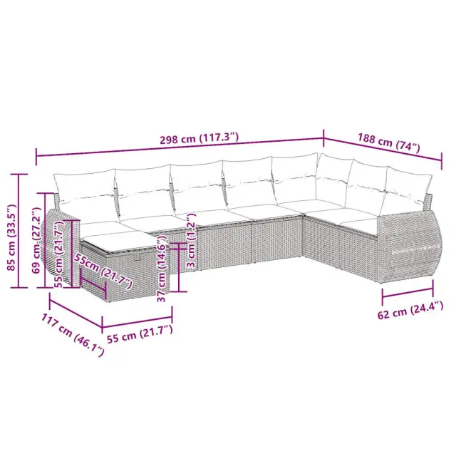 vidaXL Vrtna sedežna garnitura 8-delna z blazinami črn poli ratan