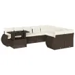 vidaXL Vrtna sedežna garnitura 10-delna z blazinami rjava poli ratan
