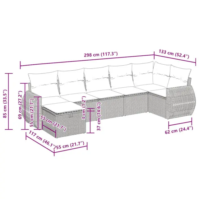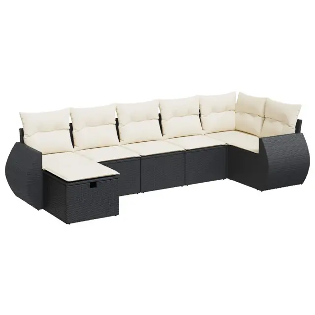 Ta vrtna sedežna garnitura je popoln dodatek za vaše dvorišče, teraso ali verando, saj zagotavlja udoben in vabljiv prostor za klepet z družino in prijatelji ali preprosto za sprostitev in uživanje na prostem. Trpežen material: PE ratan, znan tudi kot poli ratan, je močan sintetični material, ki ne potrebuje vzdrževanja in je videti kot naravni ratan. Je lahek, enostaven za čiščenje in se zaradi svoje vzdržljivosti in odpornosti na vremenske vplive pogosto uporablja za zunanje pohištvo.Funkcija shranjevanja z vodoodporno torbo: Vrtno pohištvo ima pod sedežem prostor za shranjevanje, opremljen z vodoodporno torbo za shranjevanje blazin, igrač in drugih stvari. Notranjo torbo je mogoče varno pritrditi na zunanje pohištvo s kavljem in zanko za večjo stabilnost.Vsestranski stolček za noge: Stolček je vsestransko uporaben, saj služi kot udoben naslon za noge, ko ležite na kavču, ali kot dodaten sedež na vrtu.Prevleko je mogoče odstraniti in oprati: Te sedežne blazine imajo odstranljive prevleke za lažje pranje in vzdrževanje.Modularna zasnova: Ta komplet zunanjega pohištva ima modularno zasnovo, zaradi česar je popolnoma prilagodljiv in enostaven za premikanje, tako da lahko zunanjo garnituro postavite kakor koli želite. Dobro je vedeti:Če želite, da vaše zunanje pohištvo ostane lepo, vam priporočamo, da ga zaščitite z vodoodporno prevleko.Dimenzije vodoodporne vreče: 55 x 53 x 34 cm (D x Š x V)Največja dovoljena teža (na sedež): 110 kgUV-odpornoPlastične nastavljive nogePotrebno sestavljanje: DaKavč z naslonjali za roke:Barva: ČrnaMaterial: PE ratan, jeklen okvir s prašnim premazomDimenzije: 71 x 62 x 69 cm (Š x G x V)Velikost sedeža: 55 x 55 cm (Š x G)Višina sedeža od tal (brez blazine): 37 cmVišina naslonjal za roke od tal: 55 cmKotni sedež:Barva: ČrnaMaterial: PE ratan, jeklen okvir s prašnim premazomDimenzije: 62 x 62 x 69 cm (Š x G x V)Velikost sedeža: 55 x 55 cm (Š x G)Višina sedeža od tal (brez blazine): 37 cmSrednji sedež:Barva: ČrnaMaterial: PE ratan, jeklen okvir s prašnim premazomDimenzije: 55 x 62 x 69 cm (Š x G x V)Velikost sedeža: 55 x 55 cm (Š x G)Višina sedeža od tal (brez blazine): 37 cmStolček za noge:Barva: ČrnaMaterial: PE ratan, jeklen okvir s prašnim premazomDimenzije: 55 x 55 x 37 cm (Š x G x V)Blazina:Barva: Kremno belaMaterial prevleke: Tkanina (100 % poliester)Polnilo sedežne blazine: PenaPolnilo hrbtne blazine: bombažna vlaknaDimenzije sedežne blazine: 55 x 55 x 3 cm (Š x G x D)Dimenzije hrbtne blazine: 55 x 45 x 13 cm (D x Š x D)Paket vsebuje:2 x Kavč s funkcijo shranjevanja z vodoodporno vrečo1 x Kotni kavč s funkcijo shranjevanja z vodoodporno vrečo3 x Srednji kavč s funkcijo shranjevanja z vodoodporno vrečo1 x Stolček s funkcijo shranjevanja7 x Hrbtna blazina7 x Sedežna blazina s snemljivo in pralno prevleko 3325602
