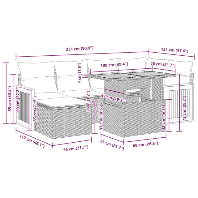vidaXL Vrtna sedežna garnitura z blazinami 7-delna bež ratan/akacija
