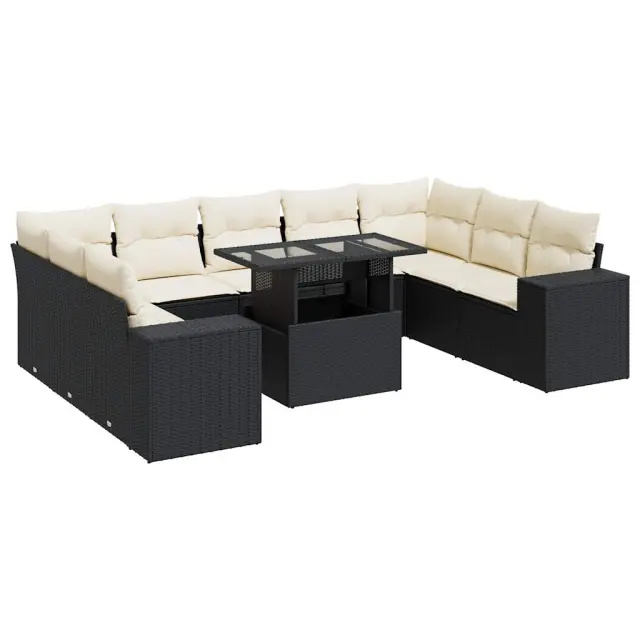 vidaXL Vrtna sedežna garnitura 10-delna z blazinami črn poli ratan