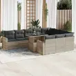 vidaXL Vrtna sedežna garnitura 11-delna z blazinami sv. siv poli ratan